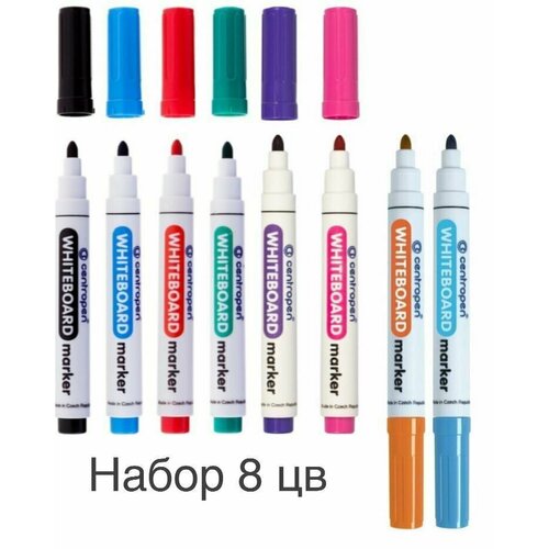 Маркеры на водной основе для магнитной белой доски стирающиеся Centropen круглый, 2.5 мм - набор из 8 цветов