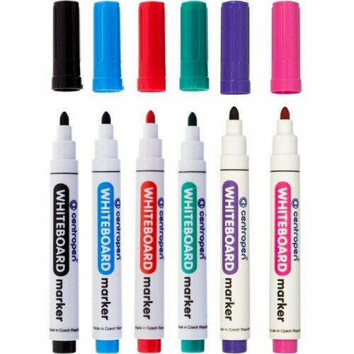 Маркеры на водной основе для магнитной белой доски стирающиеся Centropen круглый, 2.5 мм - набор из 6 цветов