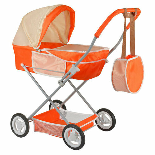 Коляска кукольная №4, цвет оранжевый с бежевым
