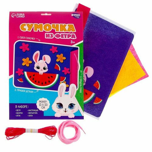 * фетр* липучки* термонаклейки* шнурокДетям нравится создавать поделки из самых невероятных материалов. Оригинальный набор для создания фетровой сумочки по-настоящему увлечёт ребёнка и станет удачным подарком для талантливого малыша!Чем полезно?Набор развивает мелкую моторику ручек малыша, координацию движений, тренирует усидчивость, аккуратность, внимательность, помогает формировать зрительное восприятие и художественный вкус.