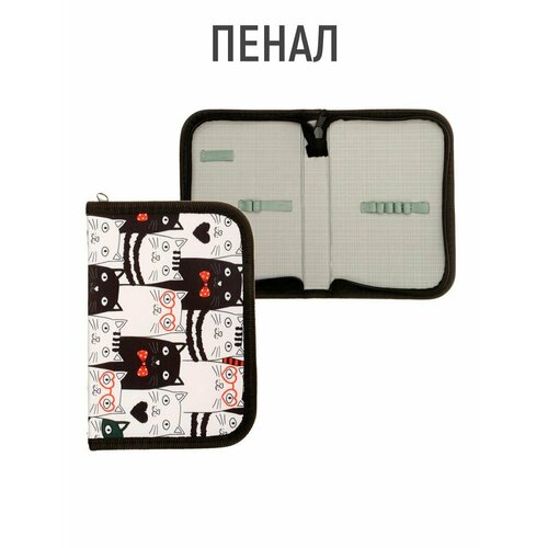 Пенал школьный на молнии, ткань, 1 секция, 13 х 19,5 см, Котики