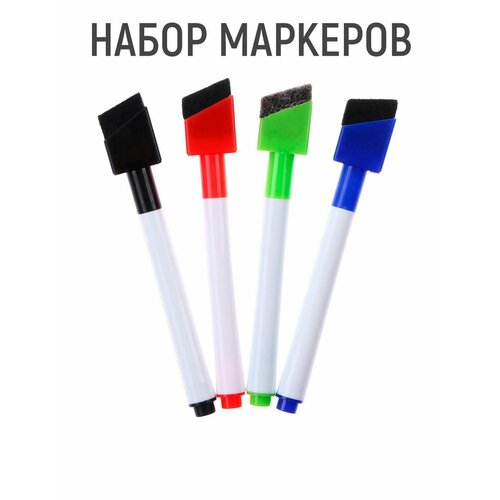 Маркер цветной на водной основе с магнитом, набор 4 шт.