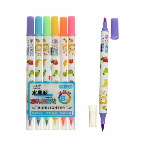 Набор маркеров-текстовыделителей, 6 флуоресцентных цветов, двусторонние
