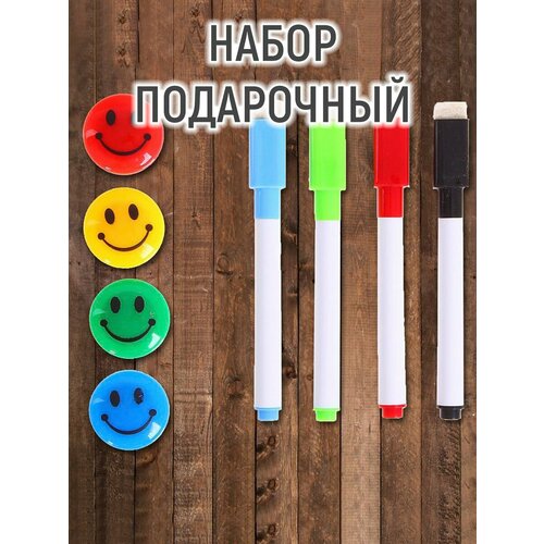 Маркеры с магнитом, цветные, на водной основе, (набор 4 шт.)