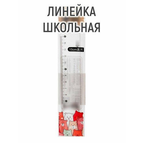 Линейка 15 см, прозрачный пластик Котики/Мишки. в пакете