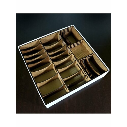 Собранный органайзер для карт в белой коробке 30х30х6 см / Склеенный органайзер и коробка