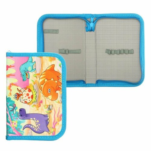 Пенал школьный на молнии, ткань, 1 секция, 13 х 19,5 см, Динозаврики