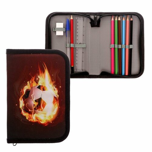Пенал школьный на молнии, ткань, 1 секция, с наполнением, 13 х 19,5 см, Мяч