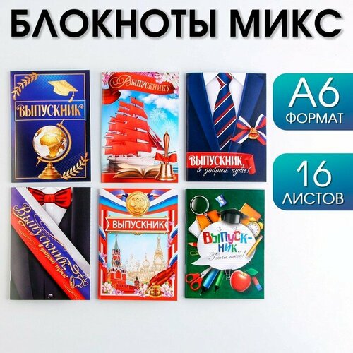 Блокнот на скрепке в клетку микс, формат А6, мягкая обложка, 16 листов 6 шт