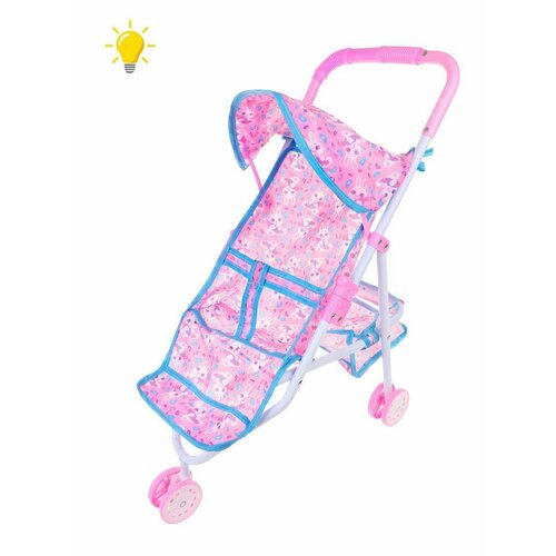 Коляска для кукол Наша Игрушка прогулочная, "Сладости", светящаяся, с крышей, металл (M1419-12L)