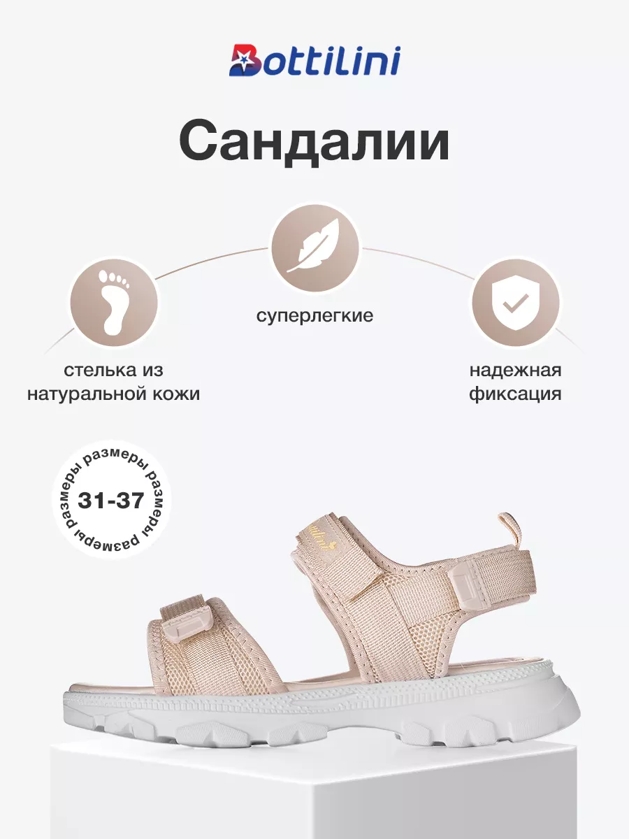 Сандалии для девочек BOTTILINI SK, бежевый, размер 35 / 21,5 см