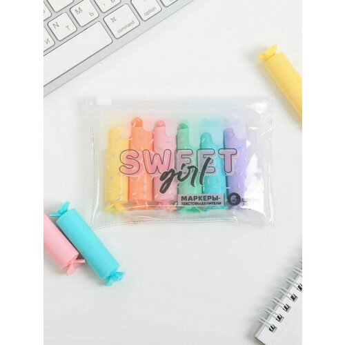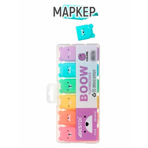 Набор маркеров текстовыделителей 6 цветов мини Зверьки