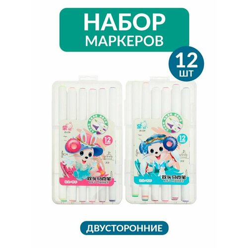 Набор маркеров для скетчинга двусторонние 12 штук/12 цветов