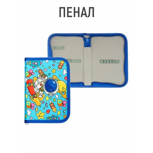 Пенал школьный на молнии, ткань, 1 секция, 13 х 19,5 см, Космос