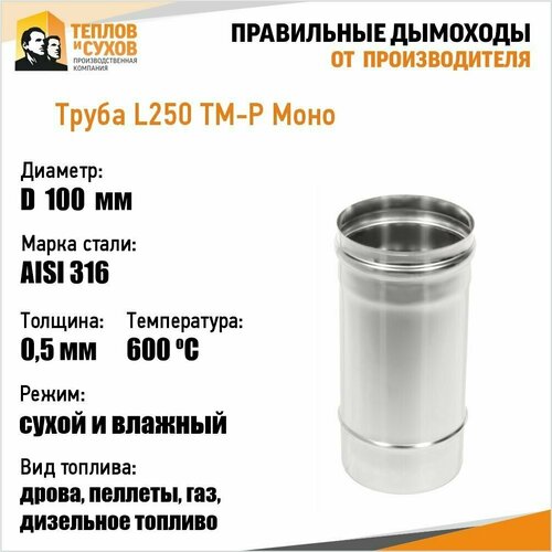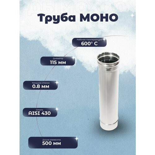 Труба моно 0,5 м 115 нержавеющая сталь 430-0.8 ТМ-Р Дымоход Теплов и Сухов