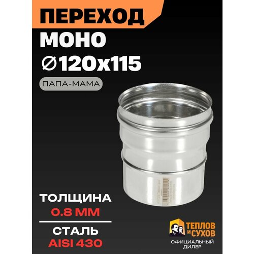 Переходник дымохода 120х115, моно переход папа / мама соединитель для труб, нержавейка 0.8 мм