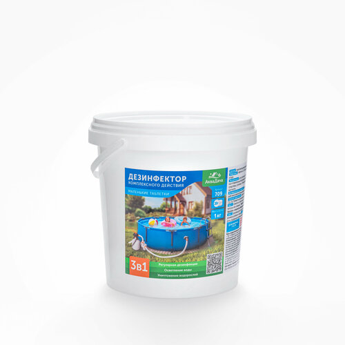 Дезинфектор для бассейна Аквадача "3 в 1 комплексный хлор" в таб по 200 г, 1 кг