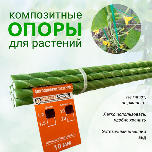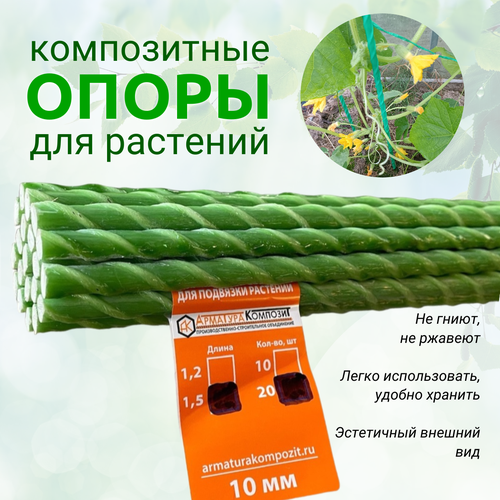 Опоры для растений 12 мм, 10 штук по 1,2 м композитные (колышки) "Арматура Композит"