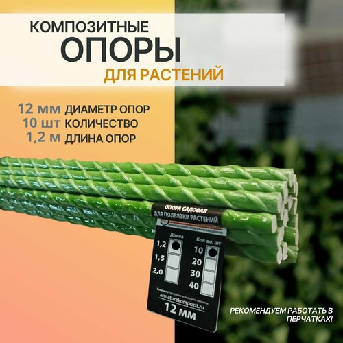 Садовые опоры для растений 12 мм, 10 штук по 2 м композитные (колышки для подвязки) "Арматура Композит"