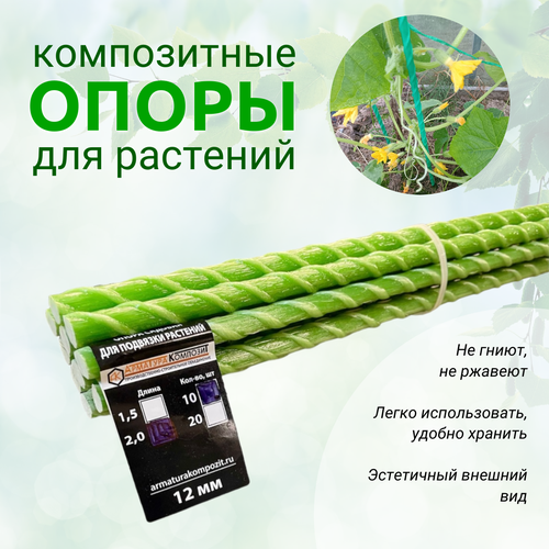 Цены на "Арматура Композит" Опора 14 мм 10 штук по 1,5 м; композитные колышки для подвязки растений и саженцев зеленый в г. Санкт-Петербург