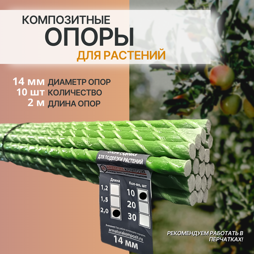 Опоры для растений и саженцев 14 мм, 10 штук по 2 м композитные (колышки) "Арматура Композит"