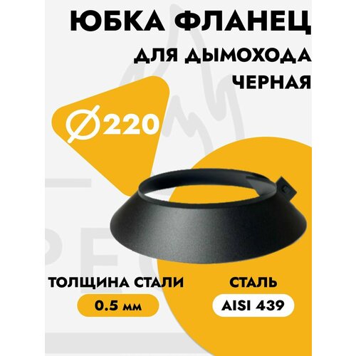 Юбка фланец декоративный чёрный для дымохода D220 мм