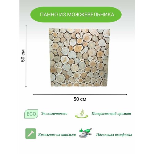 Панно Экопанно, для бани, можжевельник, березовая фанера, 50х50см, шлифованное
