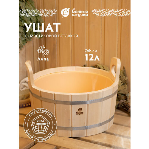 Ушат шайка "Банные штучки" 12л с регулировкой обручей и пластиковой вставкой, липа