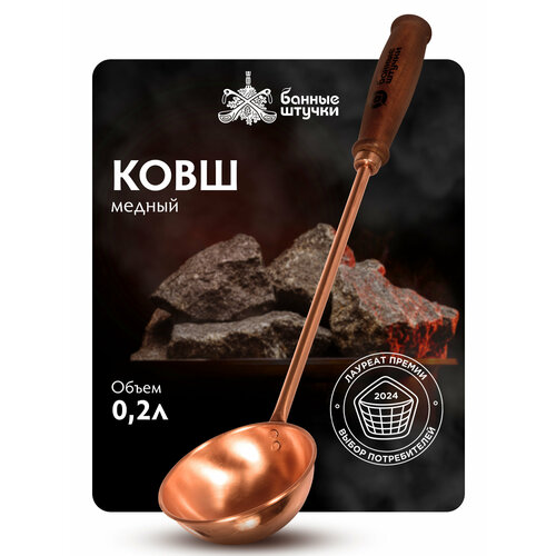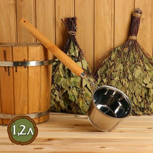 Ковш Добропаровъ для бани металлический, 1,2 л, 56 см, с деревянной ручкой (4478)