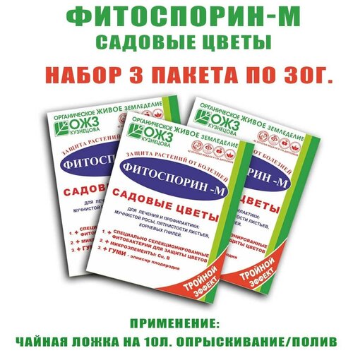 Фитоспорин-М, садовые цветы, 30 г, порошок. Набор 3 пакета