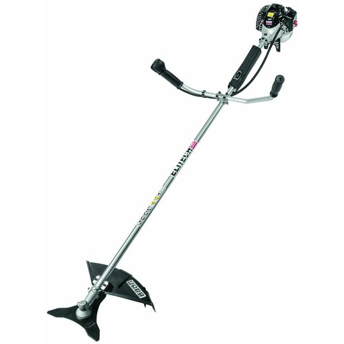 Оснащен шпулей с леской и трехлопастным ножом, что позволяет скашивать мягкую траву, бурьян и небольшие кустарники.