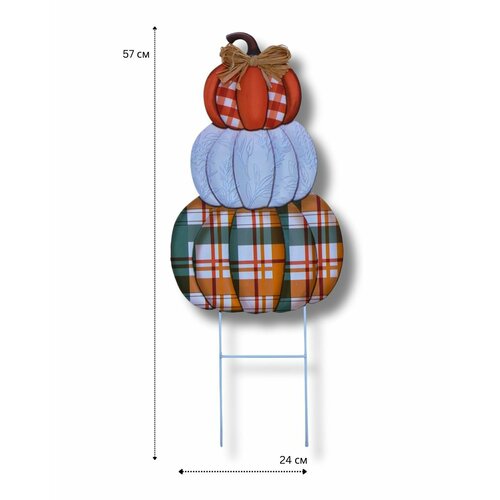 Садовый осенний декор для грядки Три тыквы клетчатые, оранжевый-зеленый-белый (вар.2)