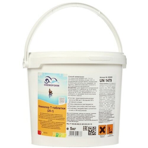 Chemoform Дезинфицирующее средство Chemoform "Всё в одном", для воды бассейне, мульти-таблетки, 200 г, 5 кг