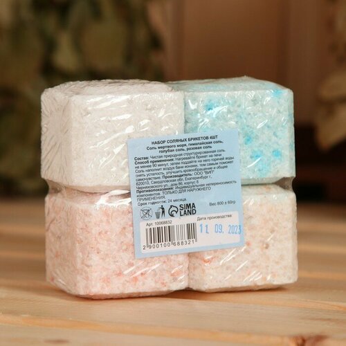 Соляной брикет набор 4 шт "Соль мертвого моря, гималайская соль, голубая соль, розовая соль"