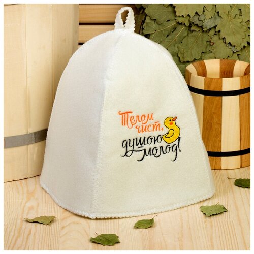 Шапка для бани с вышивкой "Телом чист, душою молод", первый сорт