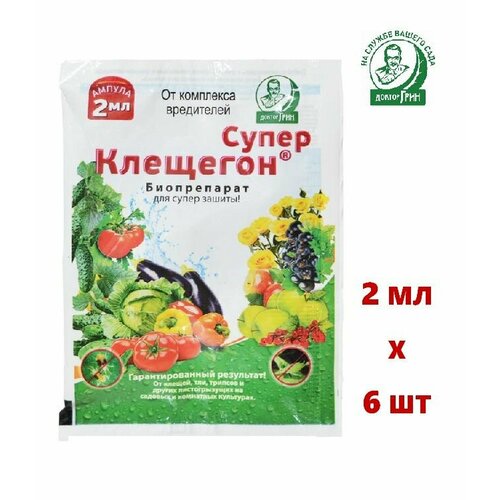 Средство от клещей, тли, трипсов и др. листогрызущих насекомых клещегон Супер Доктор Грин биопрепарат для растений, 12 мл (6 шт по 2 мл)