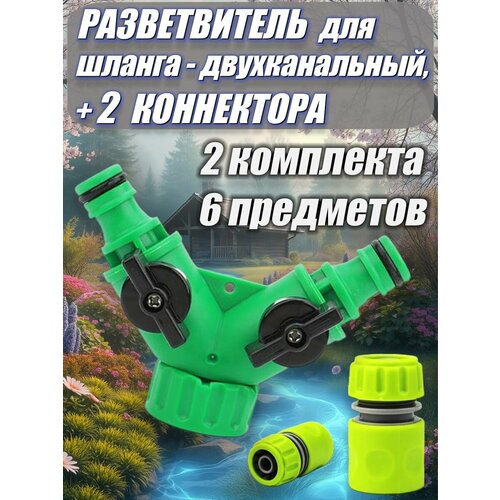 Разветвитель для шланга двухканальный 3/4", тройник пластиковый ударопрочный в комплекте с коннекторами / 2 шт
