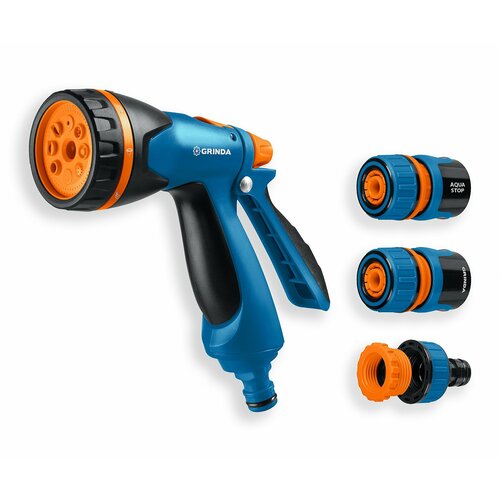 GRINDA B-812, питолет поливочный B-8, коннектор 1/2, конектор 1/2 с автостопом, адаптер с внутр. резьбой 1/2 х 3/4, набор поливочный PROLine (429114)