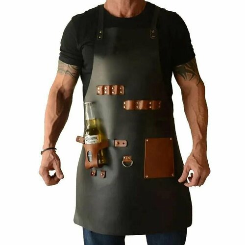 Мы отправляем товар без рисунка, вы можете наклеить свои любимые наклейки на фартук, как вам нравится!Представляем вашему вниманию кожаный фартук, идеальный для мужчин, которые ценят стиль и функциональность.