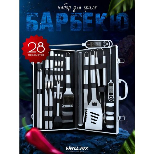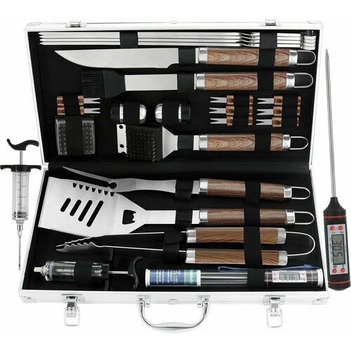 Grilljoy 24ШТ Набор инструментов для приготовления барбекю коричневый