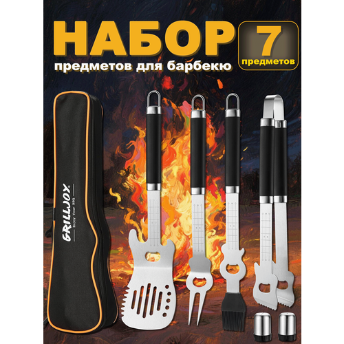Grilljoy Набор для барбекю в форме гитары, 7 предметов, нержавеющая сталь. Отлично подойдет в качестве подарка.