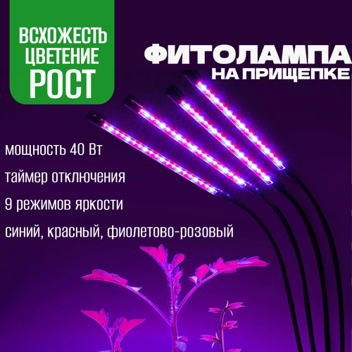 Фитолампа для растений на прищепке 40 Вт