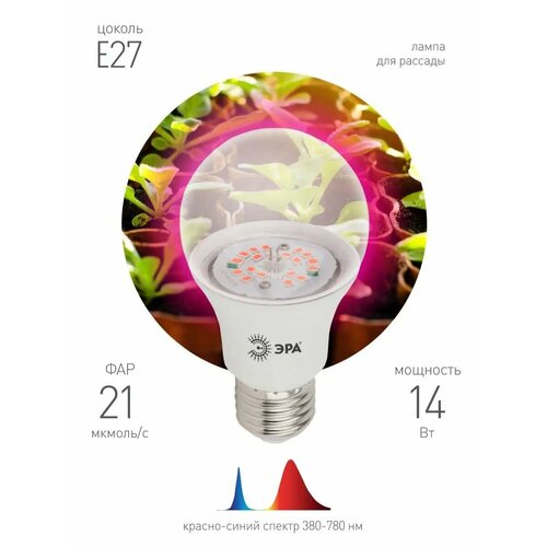 Фитолампа ЭРА FITO-14W-RB-E27-K светодиодная для растений красно-синий спектр 1310К 14Вт
