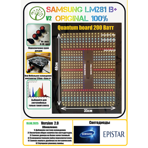 Новинка Светильник для растений 200 ватт Quantum board 200W Samsung LM281B+ Квантум борд 120 240 для Гроубокса