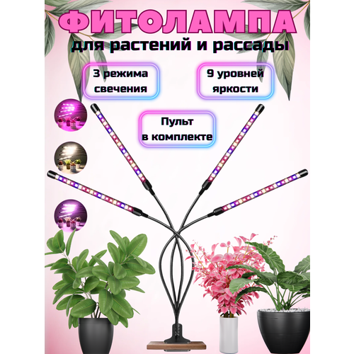 Фитолампа для растений полного спектра, 4 лампы, фитосветильник для рассады, лампа для растений на прищепке