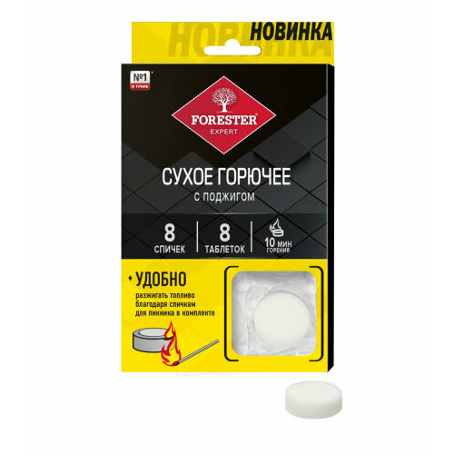 Сухое горючее FORESTER с поджигом 8 таблеток+ 8 спичек для пикника