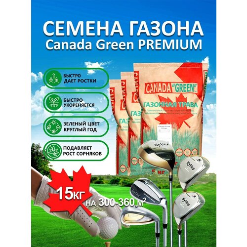 Газонная трава семена Канада Грин Премиум PREMIUM 15 кг/ мятлик, райграс, овсяница семена для газона/3 шт