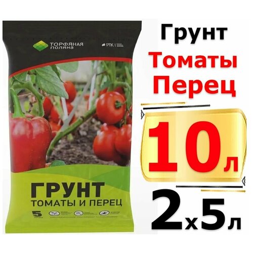 10л Торфяной грунт для томатов и перцев 5л х 2шт Торфяная Поляна РТК