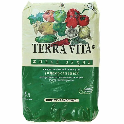 Грунт Terra Vita живая земля для рассады, 10 л, 3.5 кг