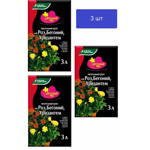 Грунт питательный "Цветочный рай" для роз, бегоний, хризантем 9 л (3 шт по 3 л)